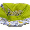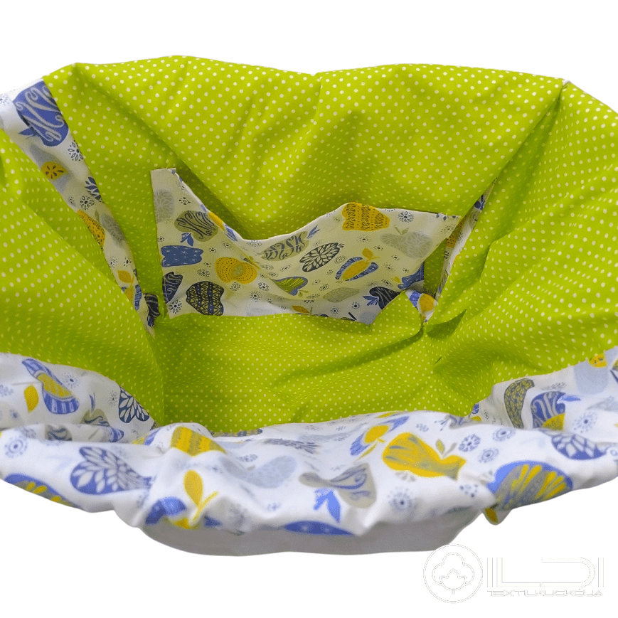 Egyedi, kézzel készített biciklikosár-bélés, amely praktikus és stílusos kiegészítője a mindennapi bringázásnak. A kosár belsejébe pontosan illeszkedik, megvédi a benne szállított holmikat, és feldobja a kerékpár megjelenését.
