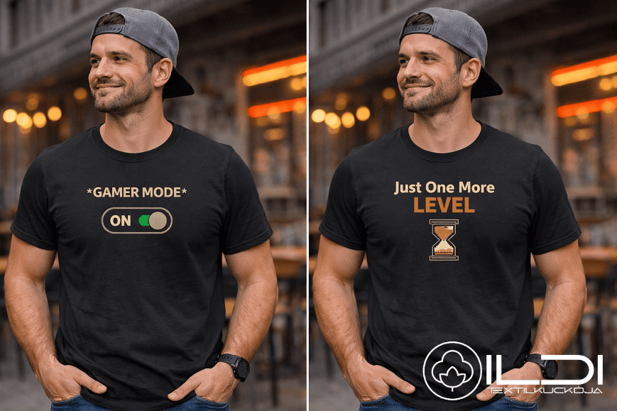 Minden pólót prémium minőségű, 100% pamut alapanyagra (180 gr/nm) készítünk. Nem tömeggyártott matricát használunk: a grafikákat Cricut technológiával vágjuk ki és professzionális hőpréssel rögzítjük, így a minta rugalmas marad, nem repedezik meg és sok-sok mosást kibír.