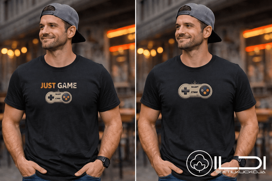 Minden pólót prémium minőségű, 100% pamut alapanyagra (180 gr/nm) készítünk. Nem tömeggyártott matricát használunk: a grafikákat Cricut technológiával vágjuk ki és professzionális hőpréssel rögzítjük, így a minta rugalmas marad, nem repedezik meg és sok-sok mosást kibír.
