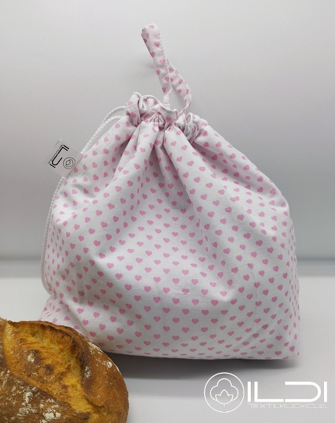 Frissentartó kenyeres zsák - rózsaszín szívek