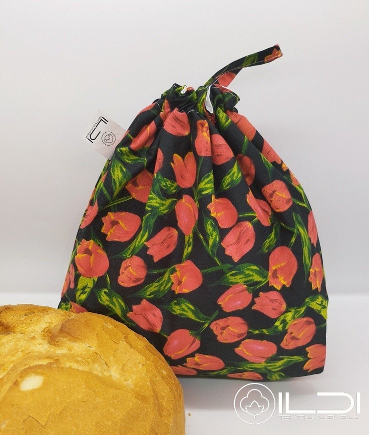 Frissentartó kenyeres zsák - tulipánok fekete alapon