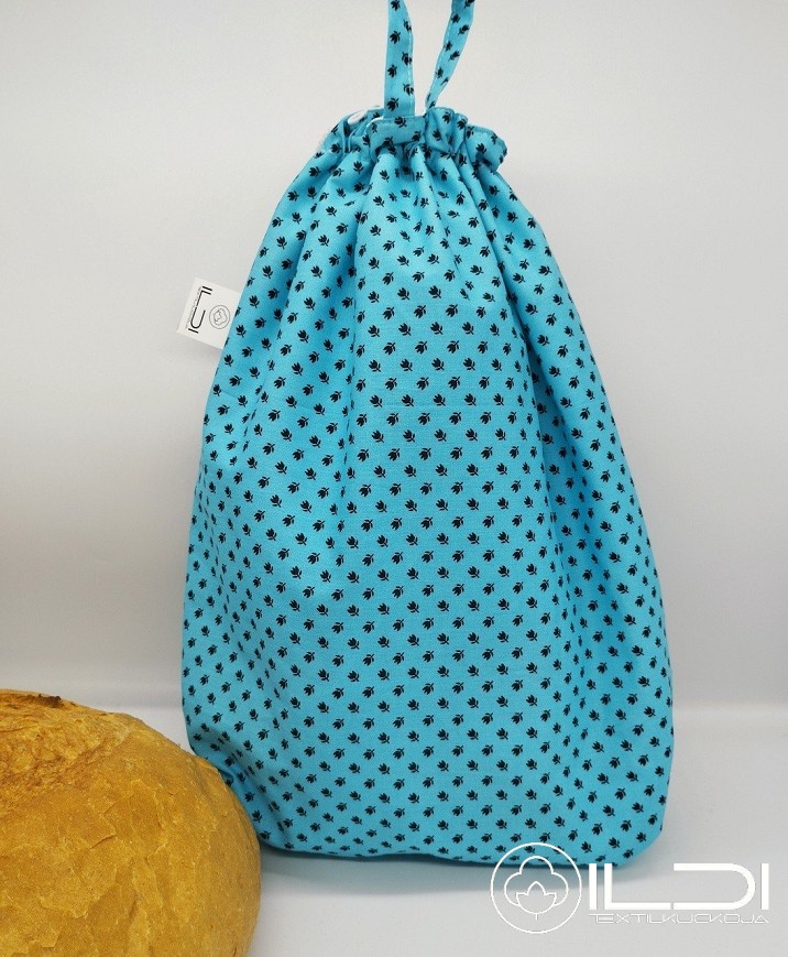 Frissentartó kenyeres zsák - türkiz alapon fekete virágok