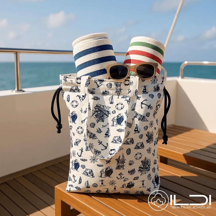 2 rétegből készítettem: egy külső, strapabíró pamut designer vászonból, valamint egy belső, vízlepergető és vízálló PUL anyagból, amely segít bent tartani a nedvességet. Húzózsinórral záródik, így könnyen nyitható és biztonságosan zárható.