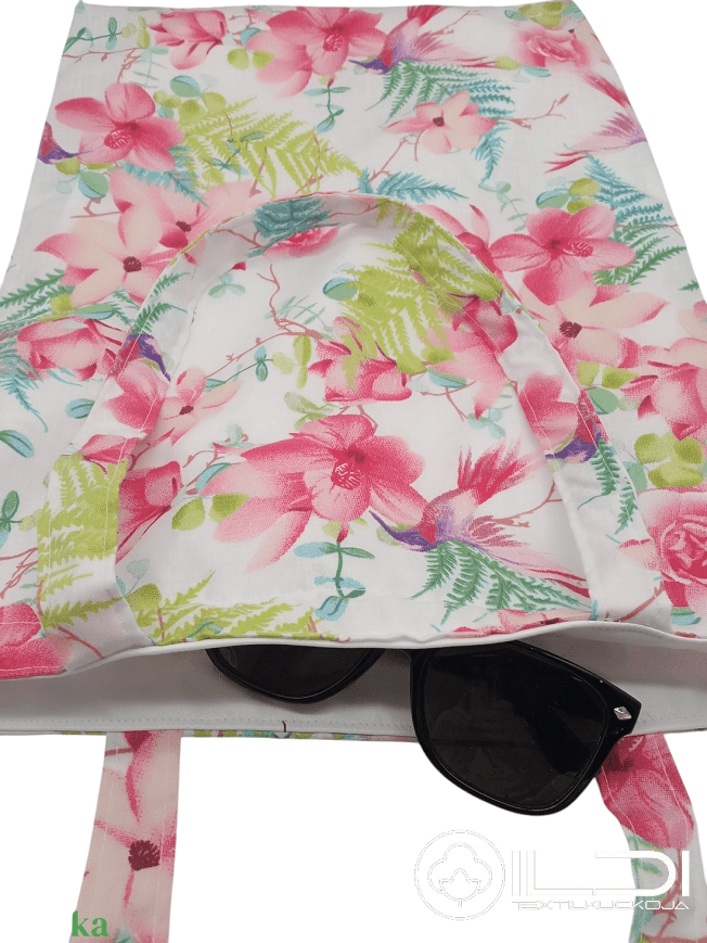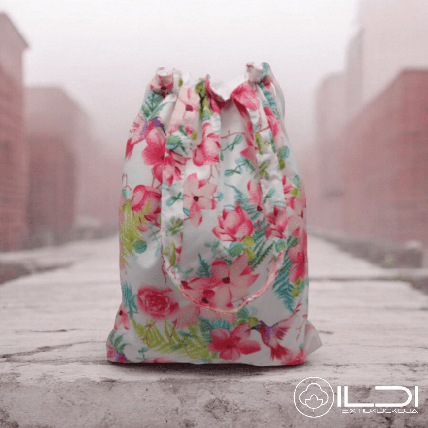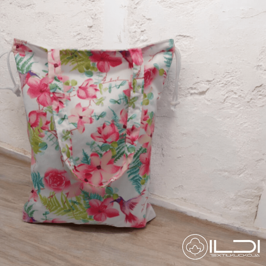 2 rétegből készítettem: egy külső, strapabíró pamut designer vászonból, valamint egy belső, vízlepergető és vízálló PUL anyagból, amely segít bent tartani a nedvességet. Húzózsinórral záródik, így könnyen nyitható és biztonságosan zárható.