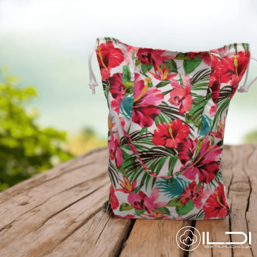 2 rétegből készítettem: egy külső, strapabíró pamut designer vászonból, valamint egy belső, vízlepergető és vízálló PUL anyagból, amely segít bent tartani a nedvességet. Húzózsinórral záródik, így könnyen nyitható és biztonságosan zárható.