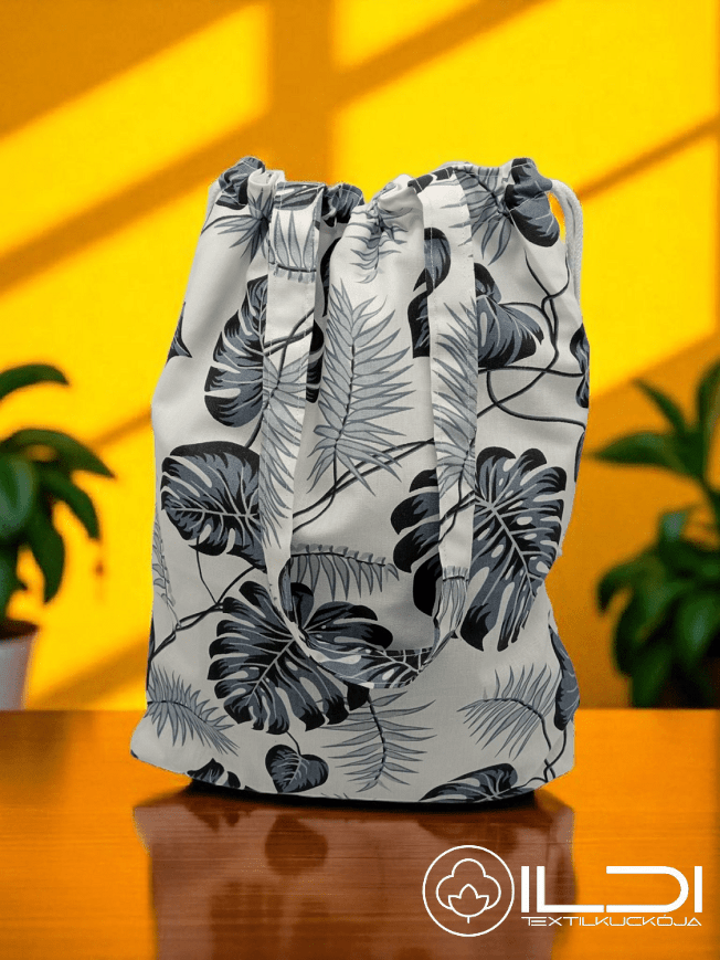 2 rétegből készítettem: egy külső, strapabíró pamut designer vászonból, valamint egy belső, vízlepergető és vízálló PUL anyagból, amely segít bent tartani a nedvességet. Húzózsinórral záródik, így könnyen nyitható és biztonságosan zárható.