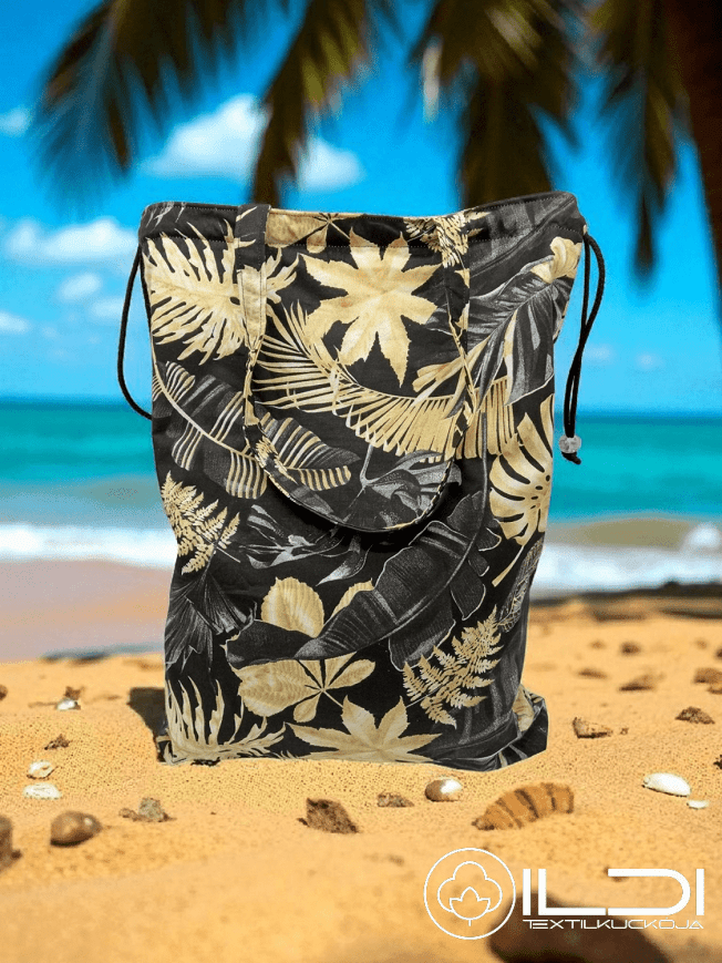 2 rétegből készítettem: egy külső, strapabíró pamut designer vászonból, valamint egy belső, vízlepergető és vízálló PUL anyagból, amely segít bent tartani a nedvességet. Húzózsinórral záródik, így könnyen nyitható és biztonságosan zárható.