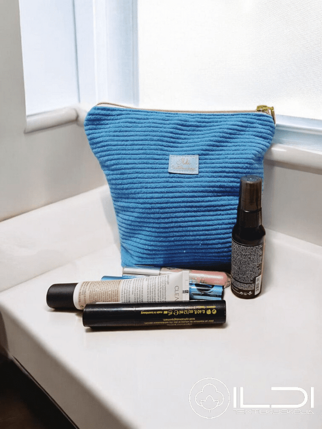 A neszeszer kordbásony külsővel és pul vízhatlan béléssel készül, cipzárral záródik, vatelinnel bélelt a két anyag között.