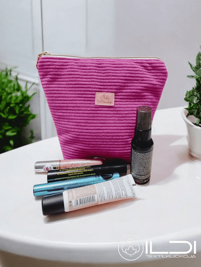 A neszeszer kordbásony külsővel és pul vízhatlan béléssel készül, cipzárral záródik, vatelinnel bélelt a két anyag között.