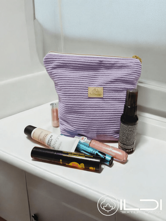 A neszeszer kordbásony külsővel és pul vízhatlan béléssel készül, cipzárral záródik, vatelinnel bélelt a két anyag között.