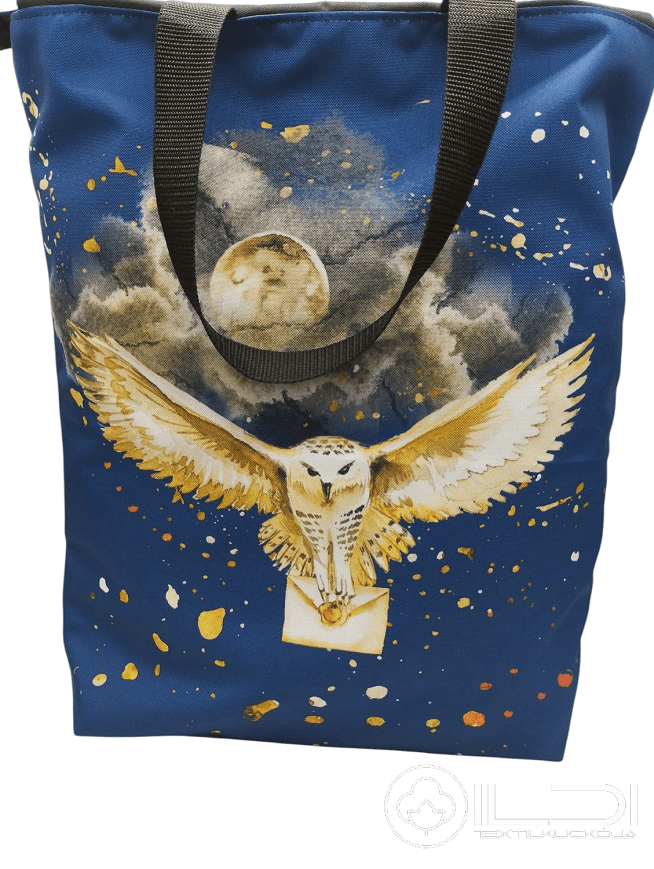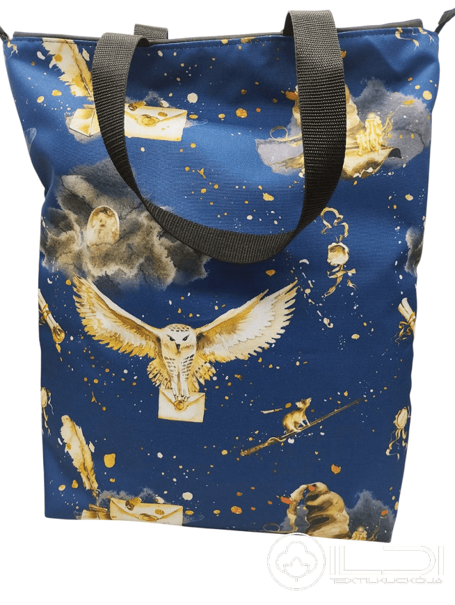 Vízálló poliészterből készült, nagy pakolós táska. Pamutvászon béléssel, cipzárral záródik.