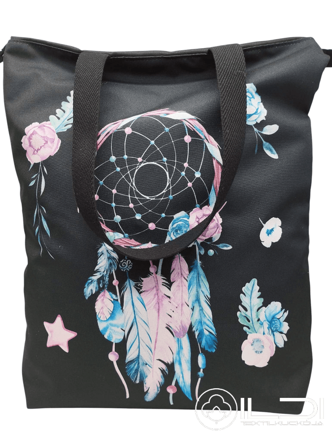 Vízálló poliészterből készült, nagy pakolós táska. Pamutvászon béléssel, cipzárral záródik.