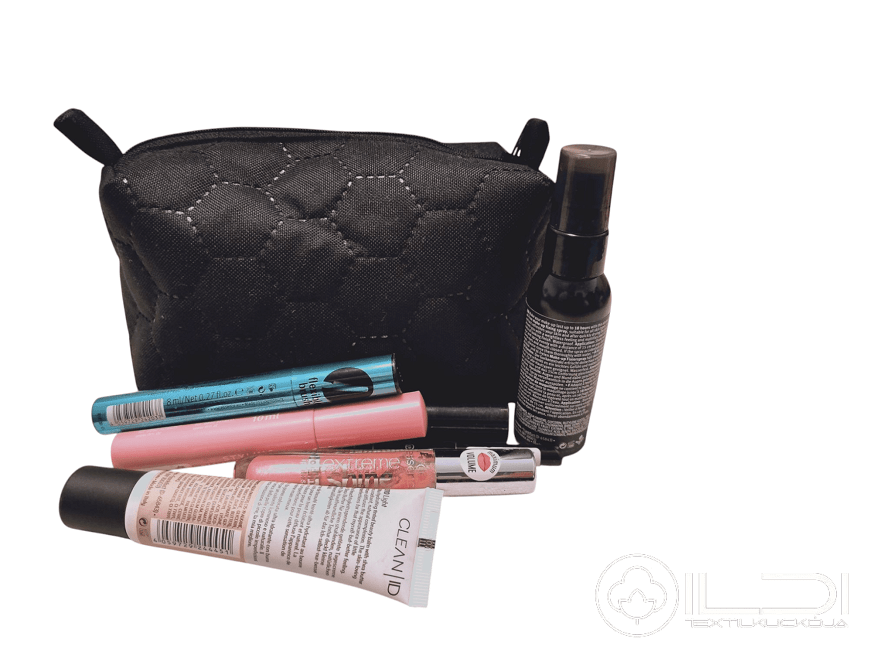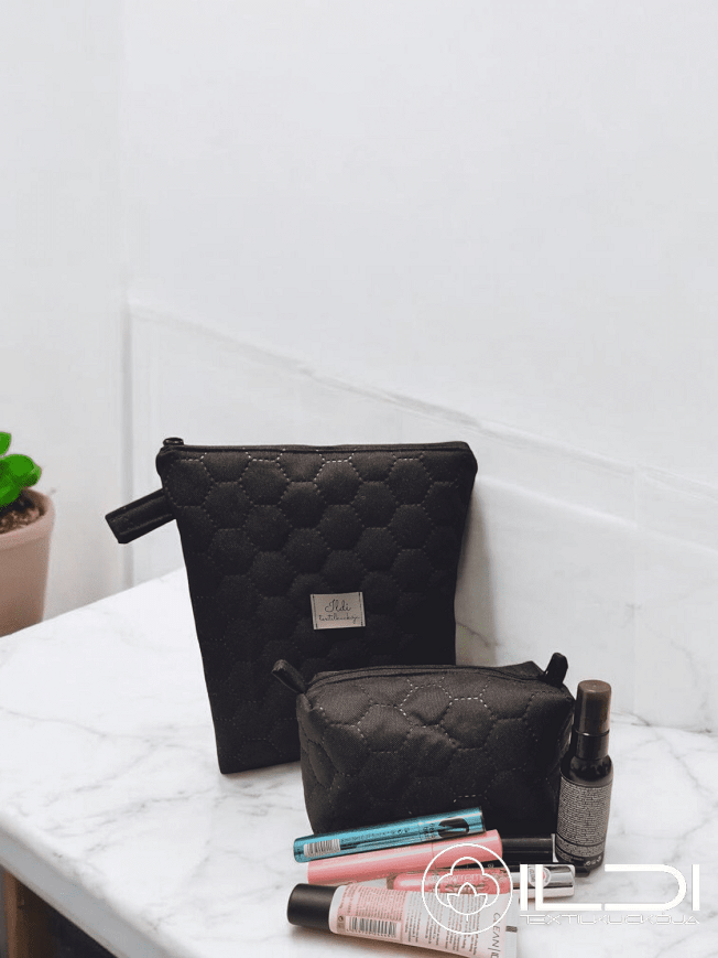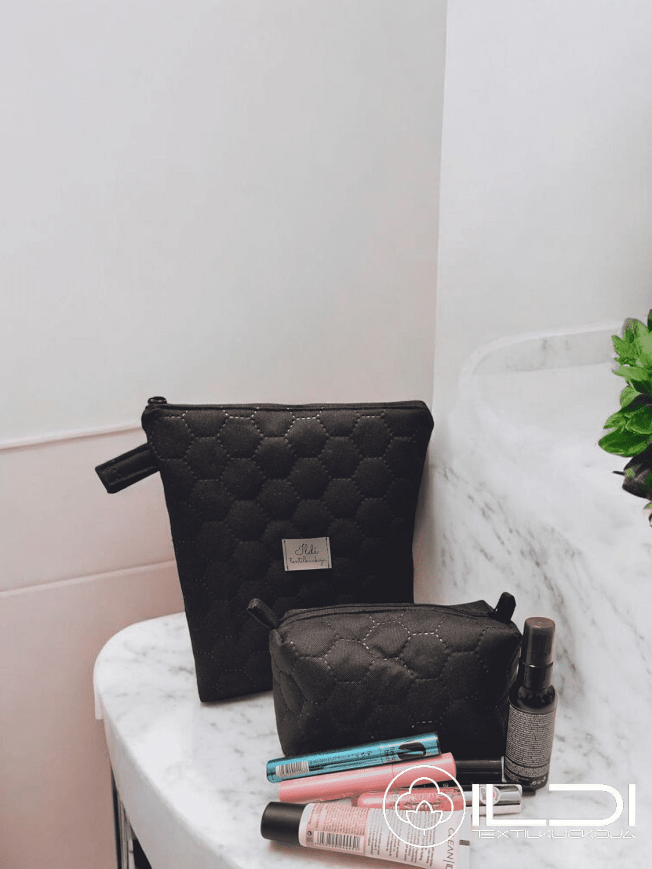 A neszeszerek steppelt, vízlepergetős vászon külsővel és béléssel készültek, cipzárral záródnak.