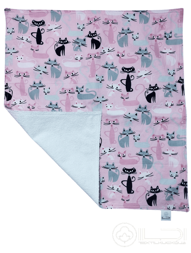 Egyik oldala designer pamutvászon, a másik oldala frottír anyag.