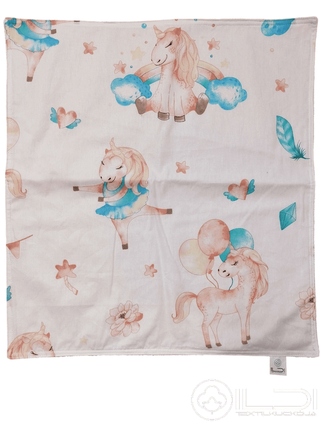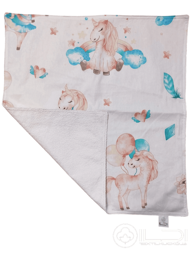 Egyik oldala designer pamutvászon, a másik oldala frottír anyag.