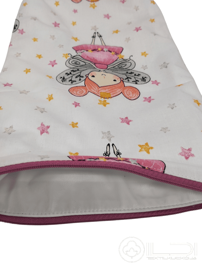 A neszeszer vízhatlan pul béléssel és designer pamutvászonból készül, cipzárral záródik. Egy műanyag patentos akasztója is van, amivel könnyedén a babakocsihoz lehet csatolni.