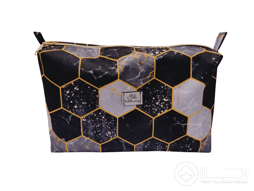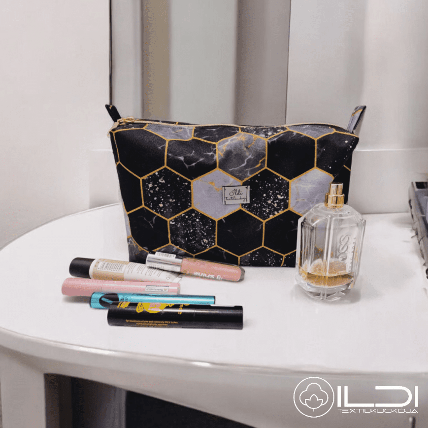 A neszeszer designer vízlepergetős vászon külsővel és egyszínű fekete vízlepergetős béléssel készült, cipzárral záródik.