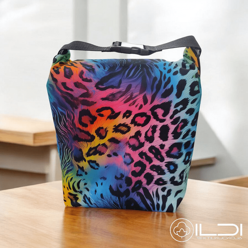 Uzsonnás táska - szivárvány leopád mintás