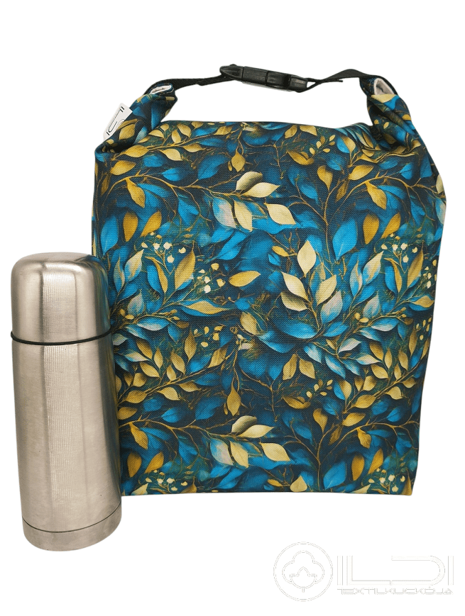 Uzsonnás táska - türkiz, arany levelek