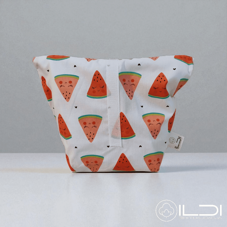 Környezetbarát, újrahasználható uzsonnás táska. Csomagolási alternatíva nem csak gyerekeknek, a nejlon zacskó és az alufólia kiváltására. Könnyen tisztítható, belseje impregnált speciális PUL, külseje 100% pamutvászon, tépőzárral záródik.