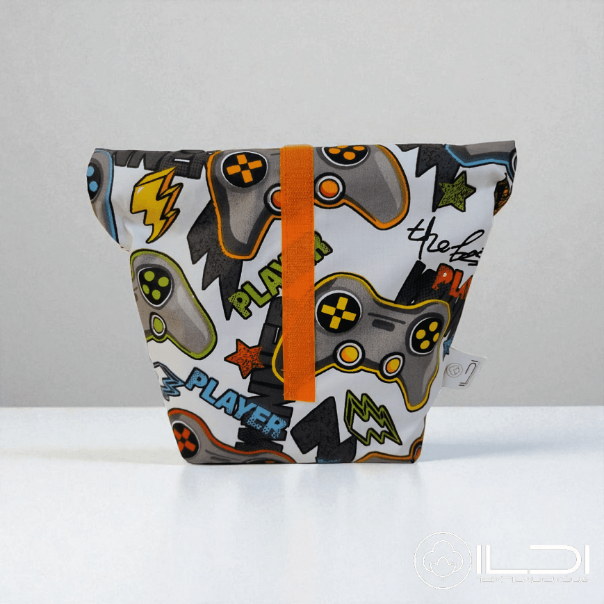 Környezetbarát, újrahasználható uzsonnás táska. Csomagolási alternatíva nem csak gyerekeknek, a nejlon zacskó és az alufólia kiváltására. Könnyen tisztítható, belseje impregnált speciális PUL, külseje 100% pamutvászon, tépőzárral záródik.