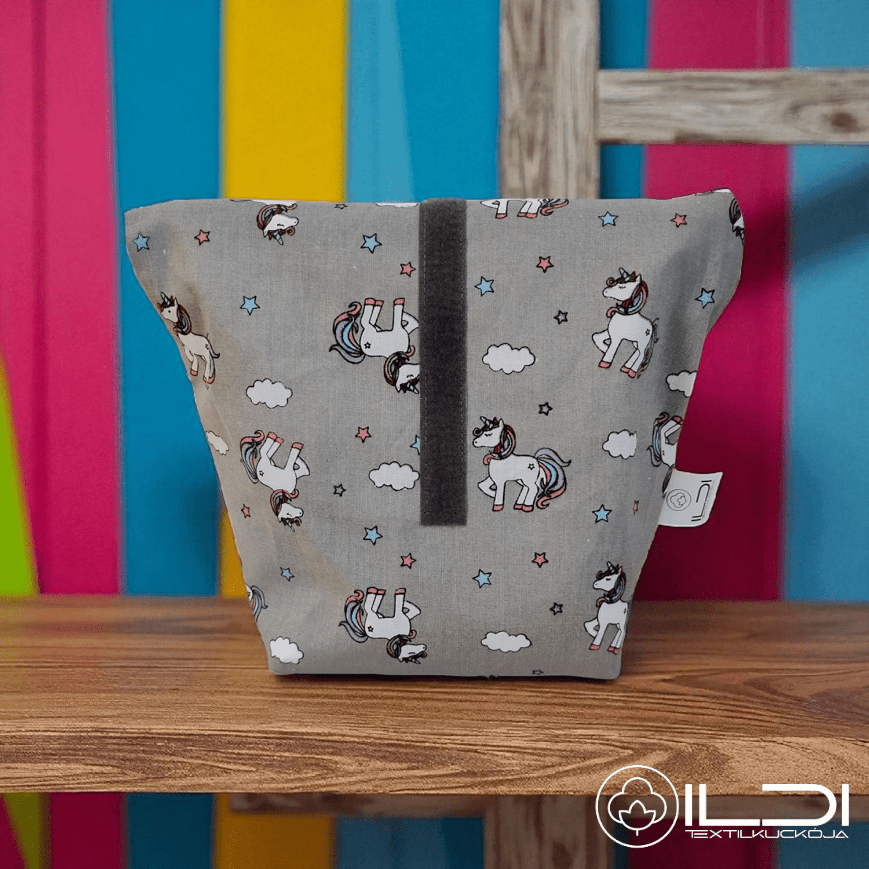 Környezetbarát, újrahasználható uzsonnás táska. Csomagolási alternatíva nem csak gyerekeknek, a nejlon zacskó és az alufólia kiváltására. Könnyen tisztítható, belseje impregnált speciális PUL, külseje 100% pamutvászon, tépőzárral záródik.