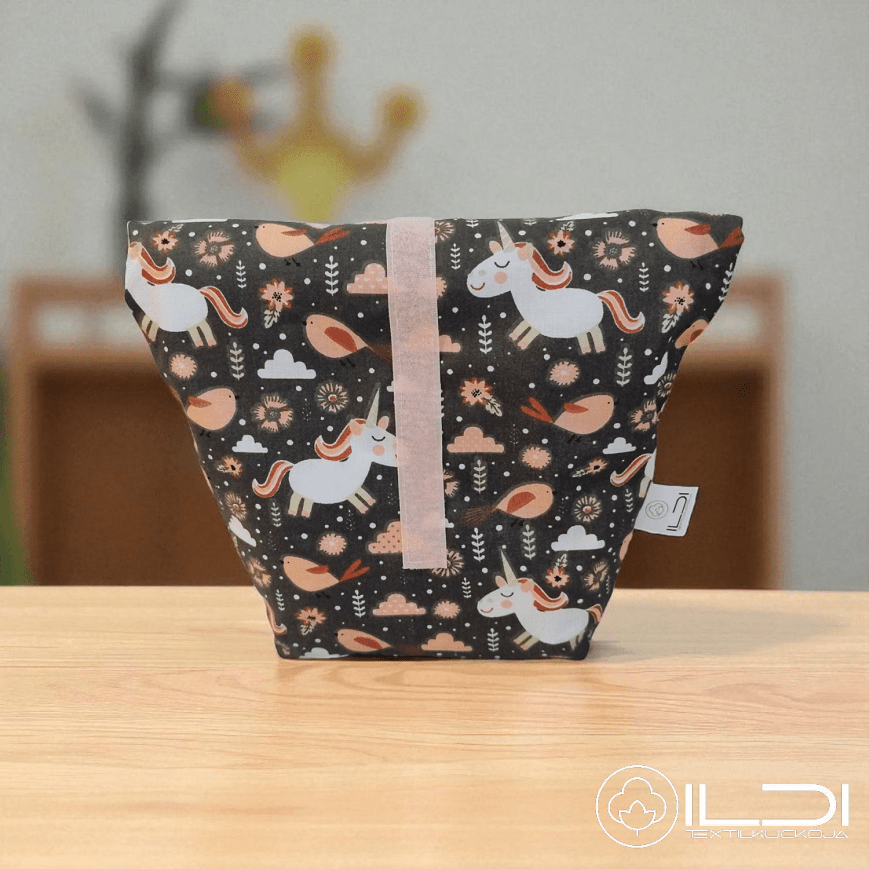 Környezetbarát, újrahasználható uzsonnás táska. Csomagolási alternatíva nem csak gyerekeknek, a nejlon zacskó és az alufólia kiváltására. Könnyen tisztítható, belseje impregnált speciális PUL, külseje 100% pamutvászon, tépőzárral záródik.